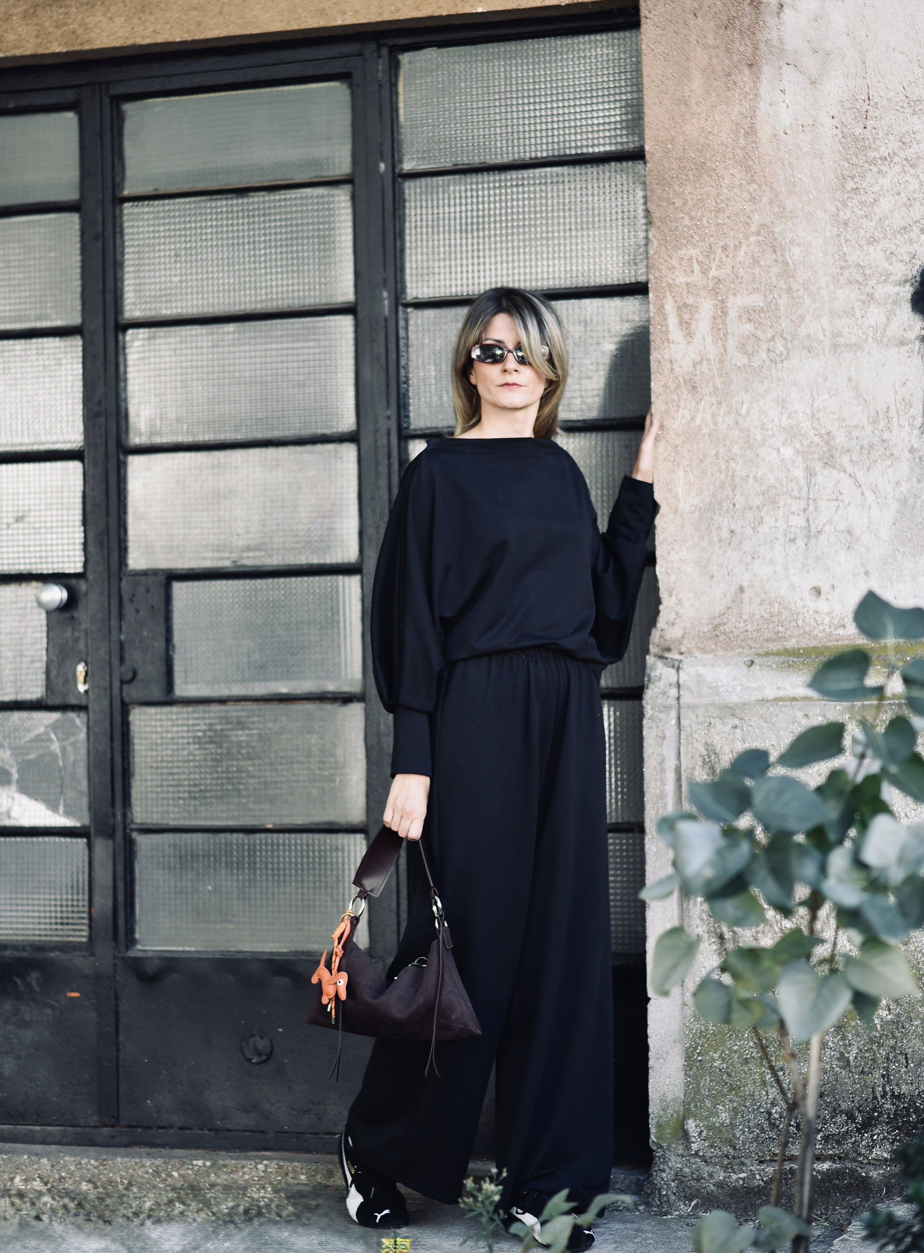 Crna Trenirka sa šišmiš rukavima